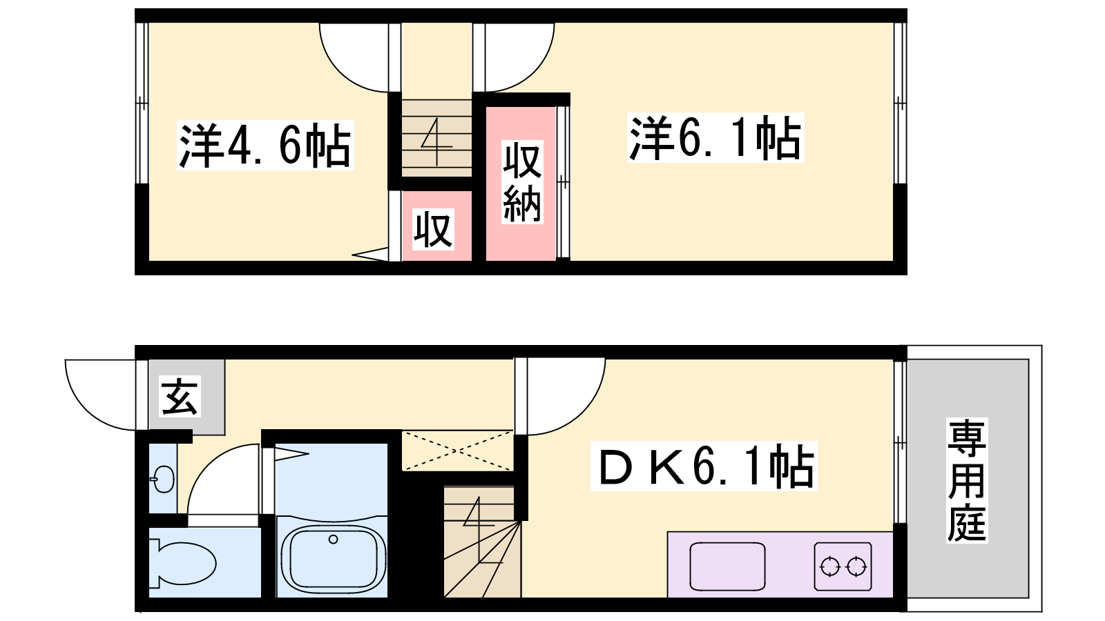 - DK6.1帖、洋室6.1帖、洋室4.6帖