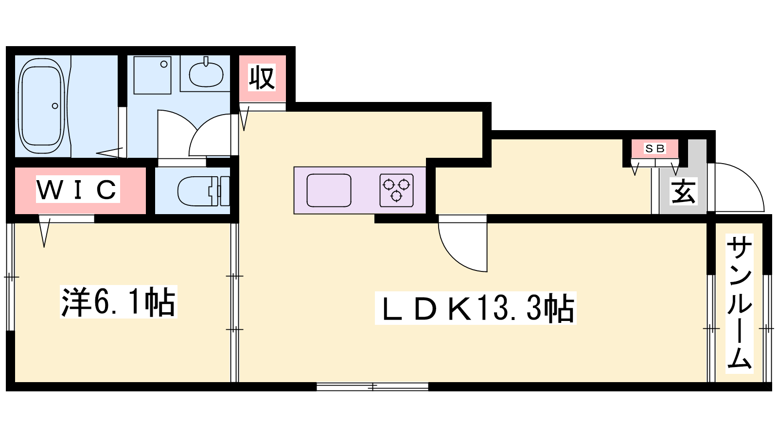 - LDK13.3帖、洋室6.1帖