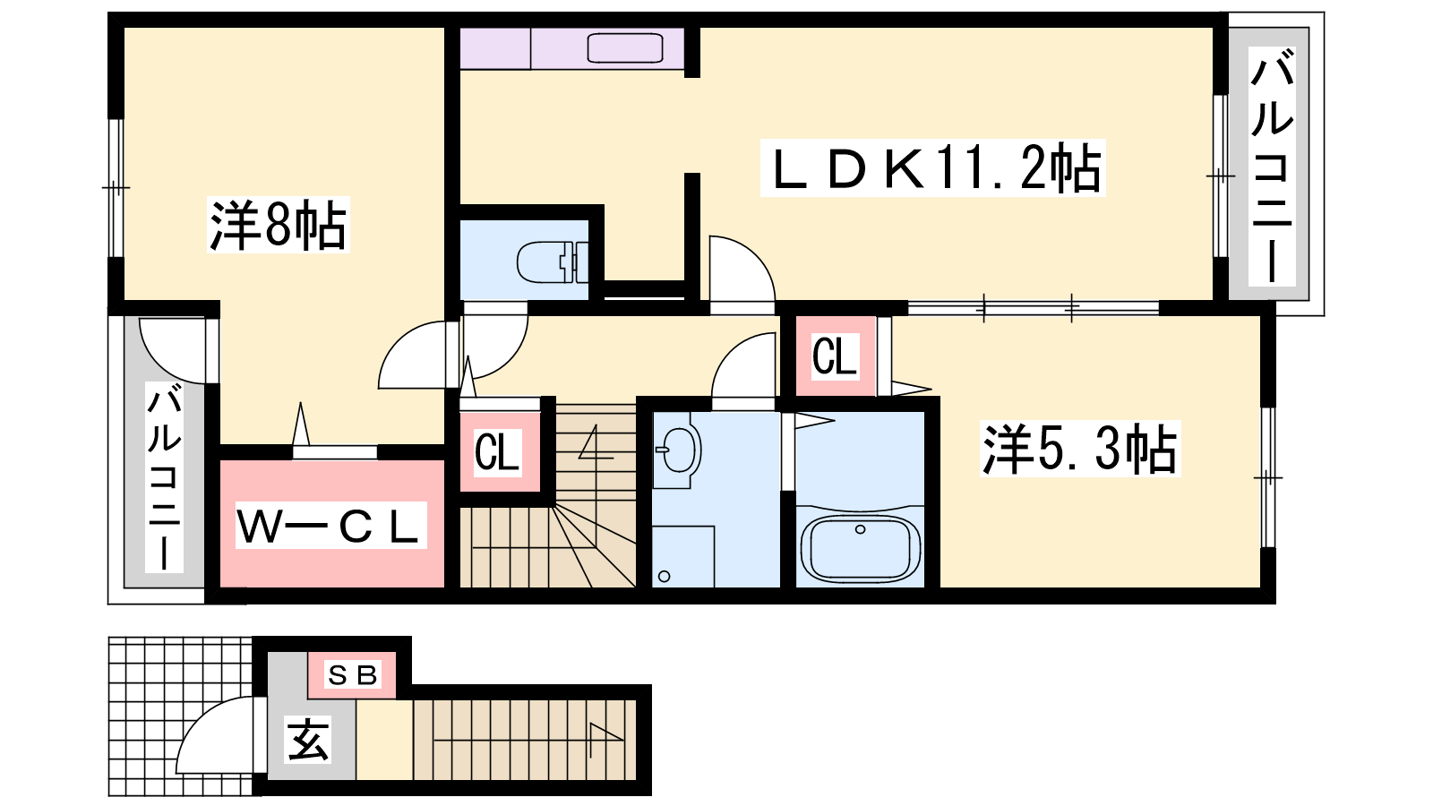 - LDK11.2帖、洋室8帖、洋室5.3帖