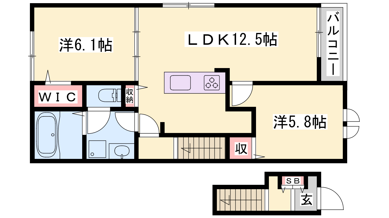 - LDK12.5帖、洋室6.1帖、洋室5.8帖