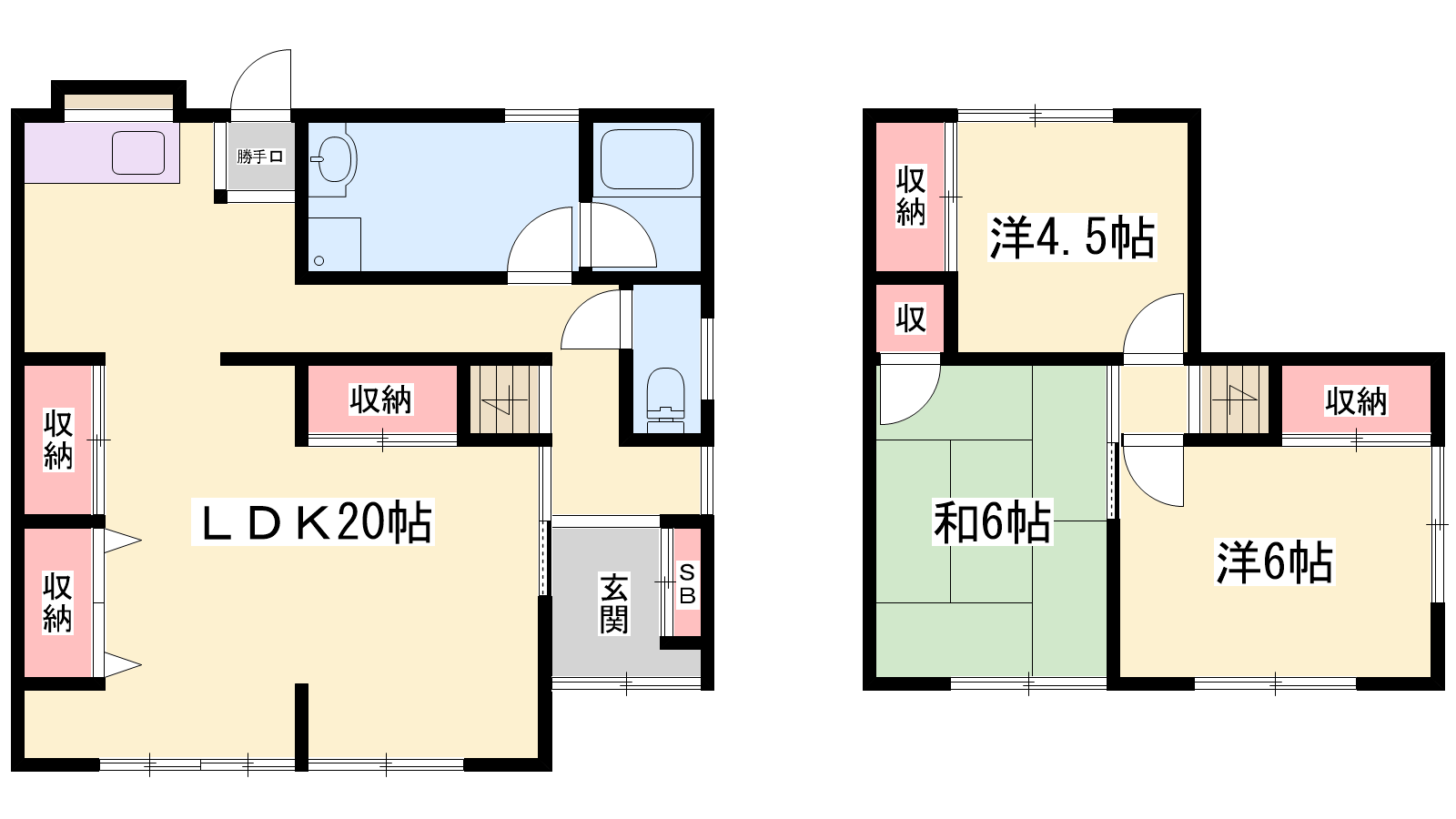- LDK20帖、洋室6帖、洋室4帖、和室6帖