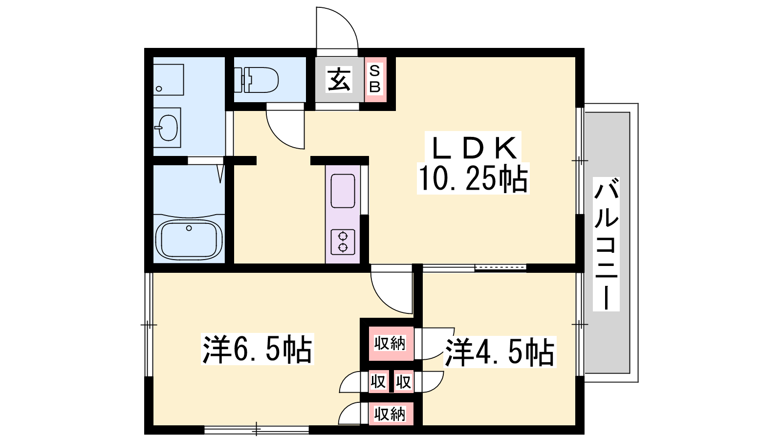 - LDK10.25帖、洋室6.5帖、洋室4.5帖