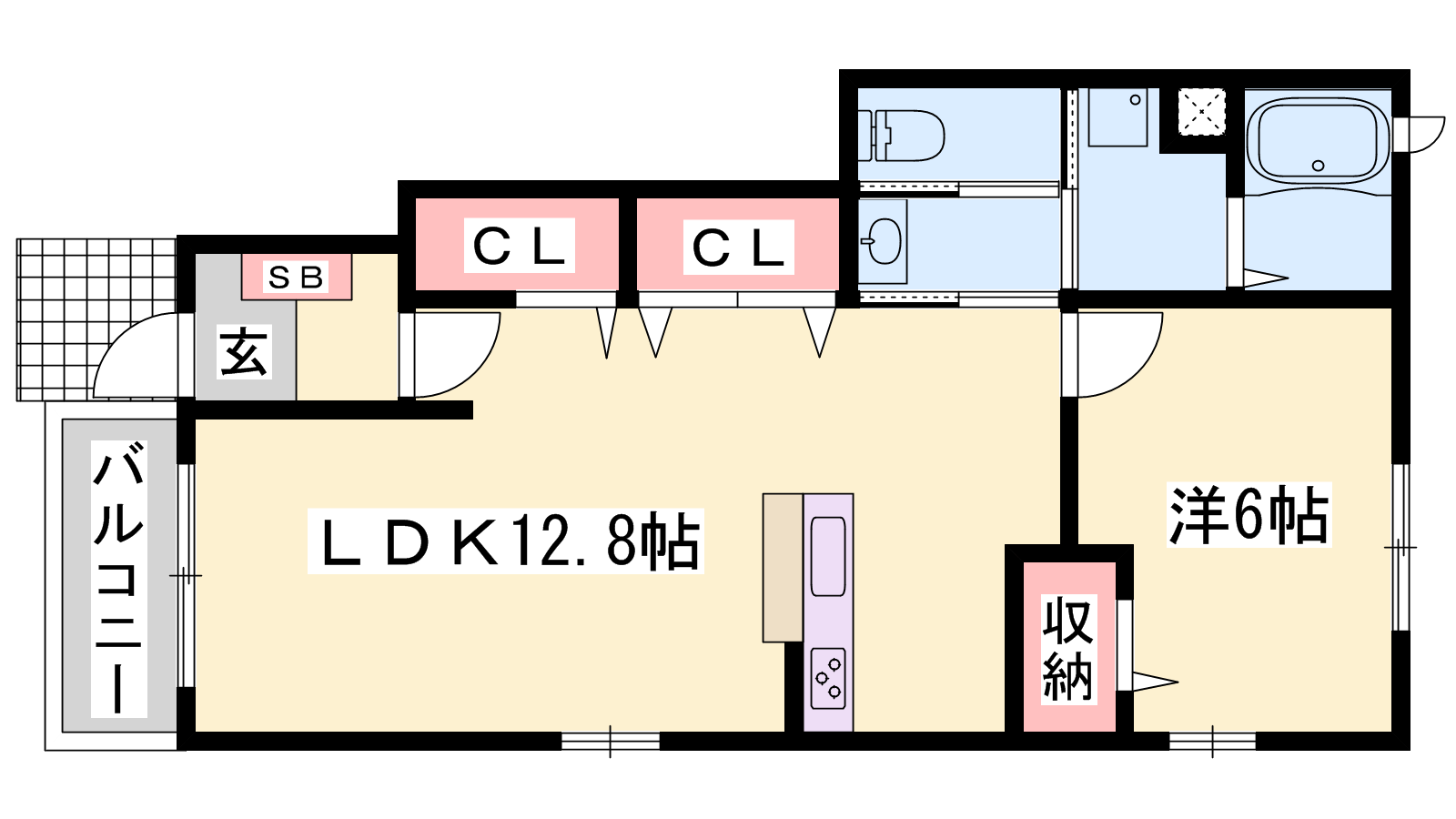 - LDK12.8帖、洋室6.3帖