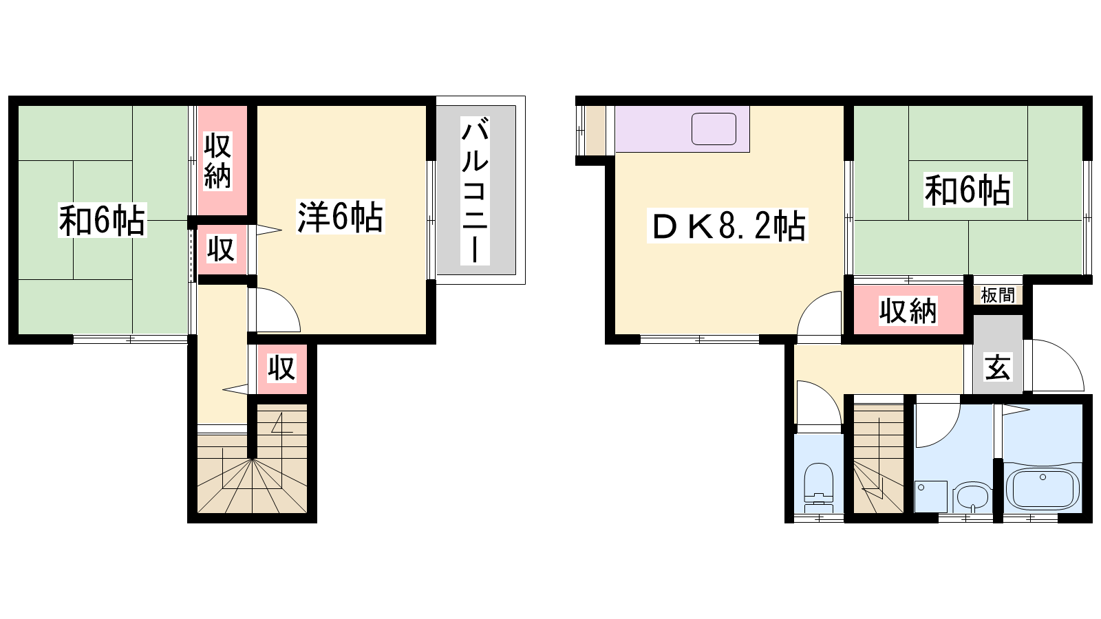 - DK8.2帖、洋室6帖、和室6帖、和室6帖