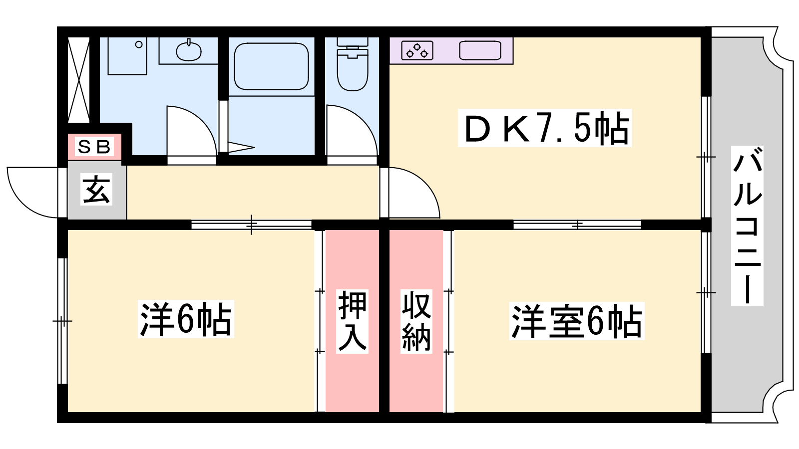 - DK7.5帖、洋室6帖、洋室6帖