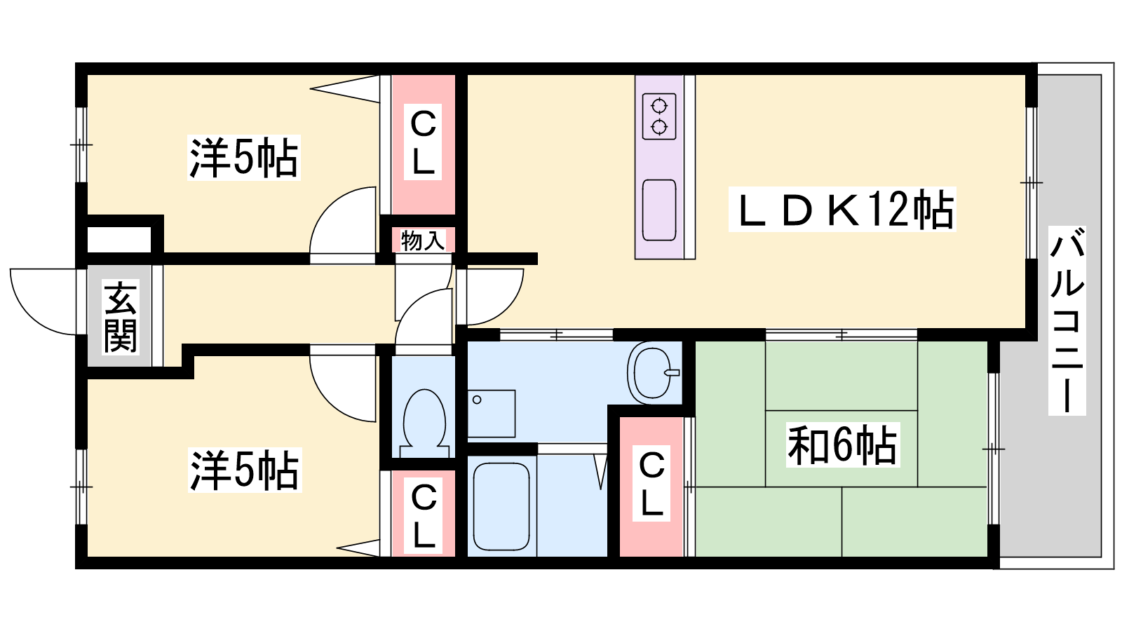 - LDK12帖、洋室5帖、洋室5帖、和室6帖