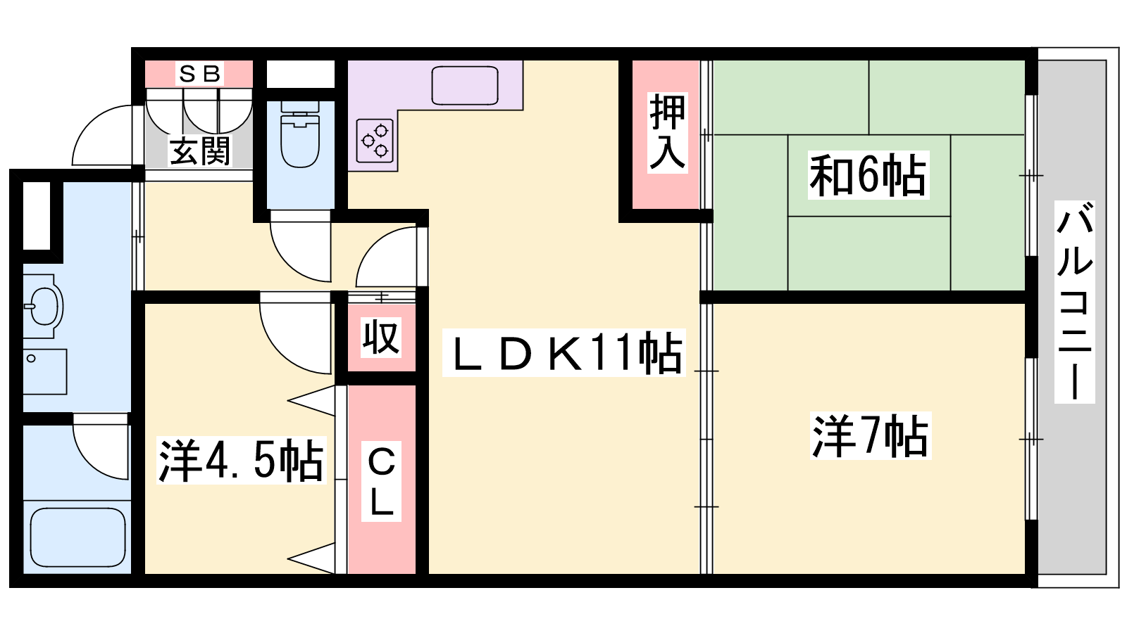 - LDK11帖、洋室7帖、洋室4.5帖、和室6帖