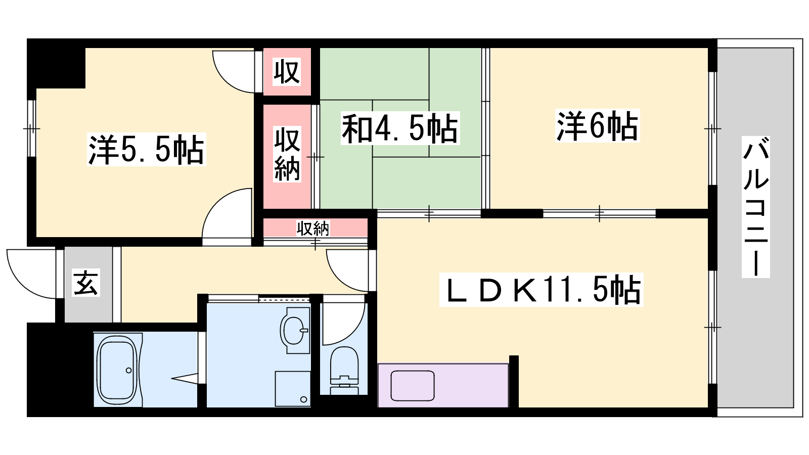 - LDK11.5帖、洋室6帖、洋室5.5帖、和室4.5帖
