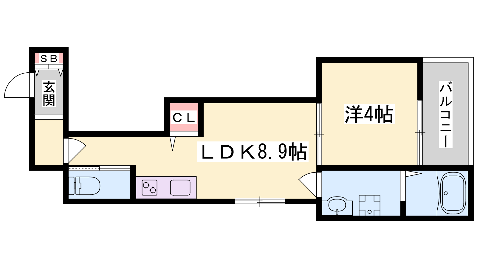 - LDK8.9帖、洋室4帖