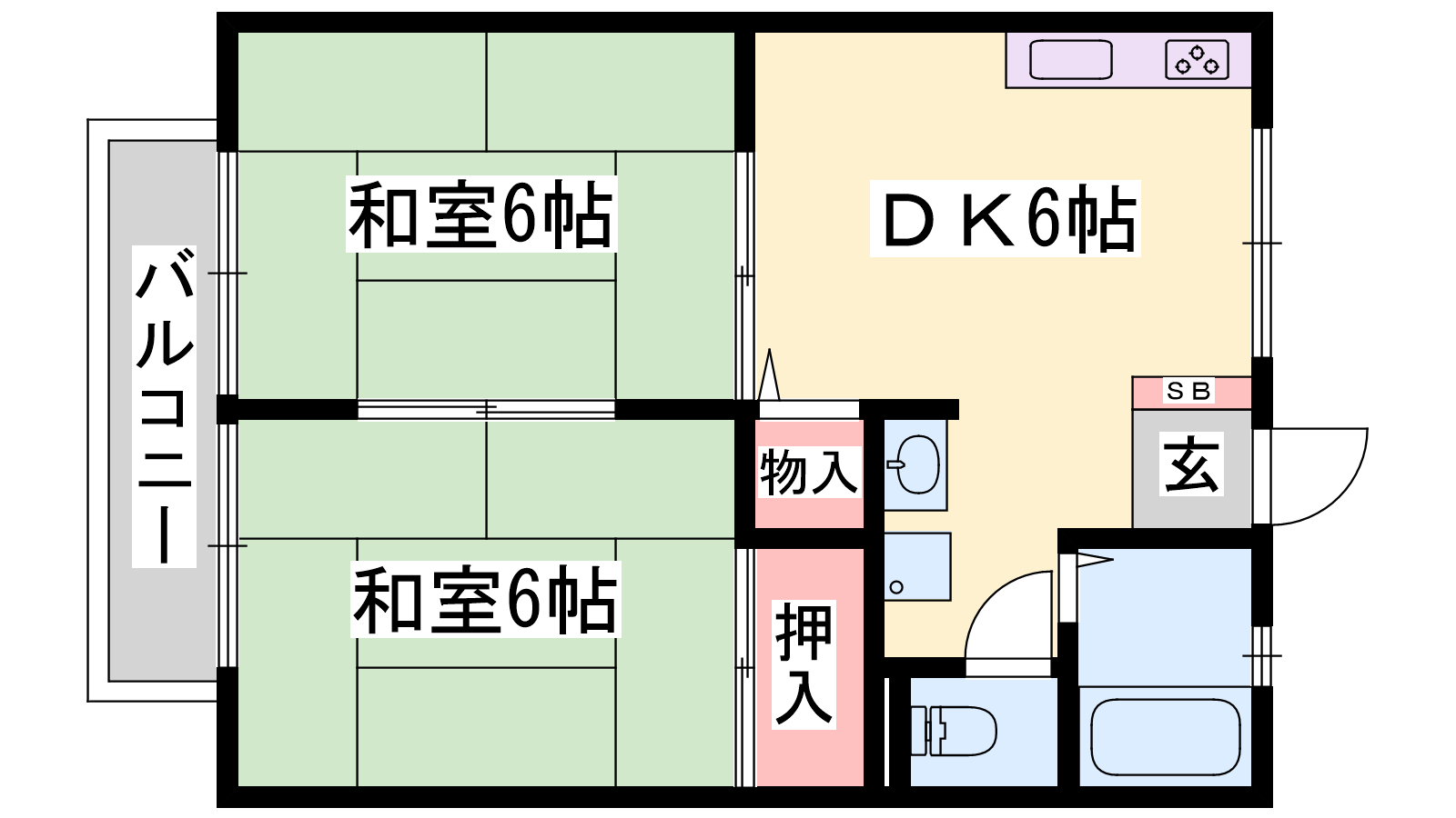 - DK6帖、和室6帖、和室6帖