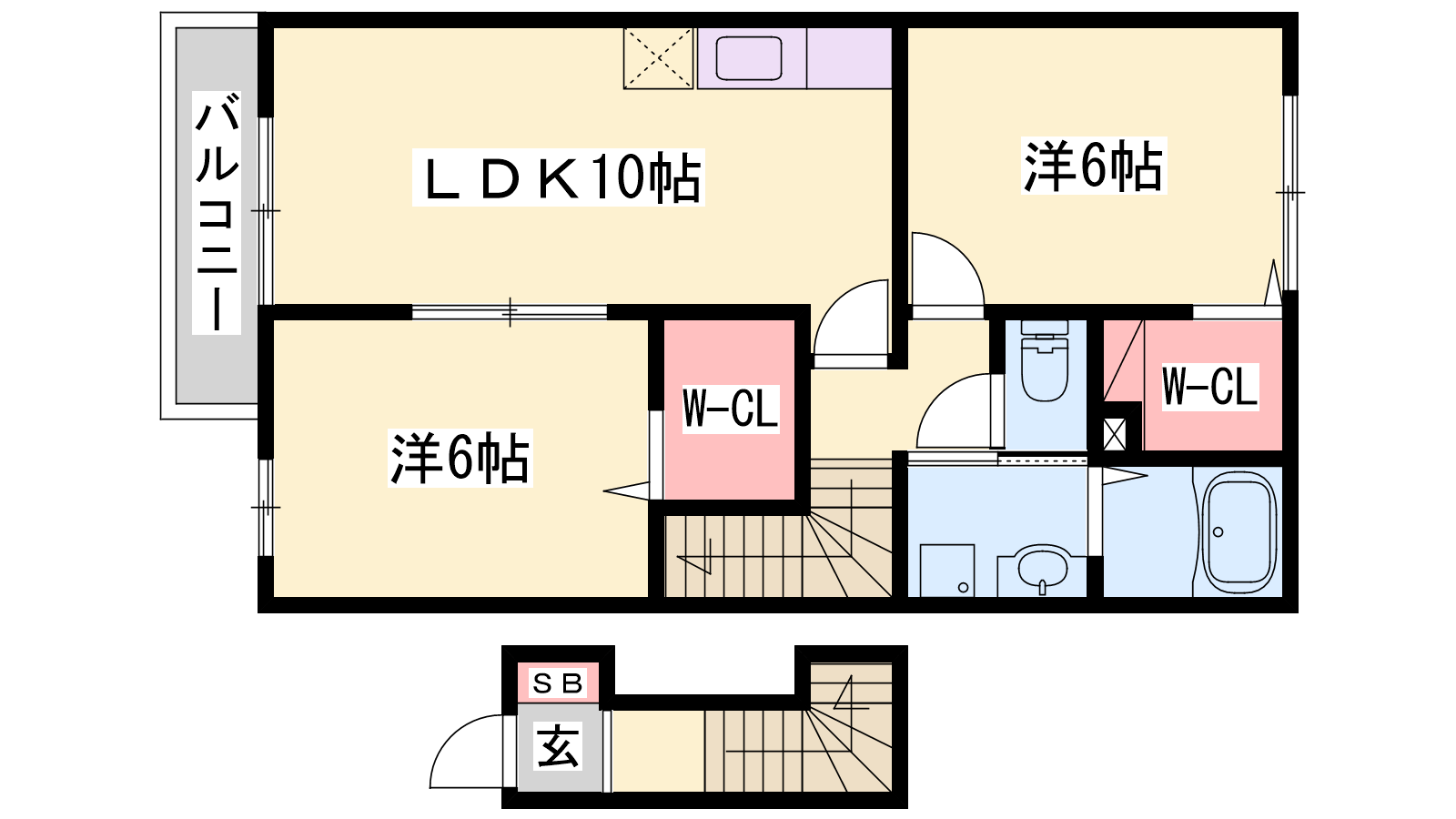 - LDK10帖、洋室6帖、洋室6帖