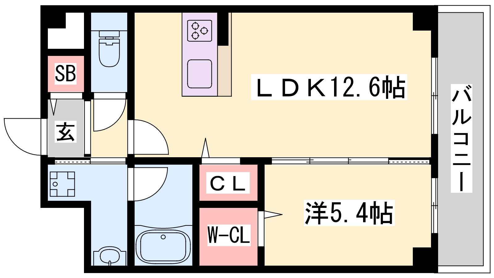 - LDK12.6帖、洋室5.4帖