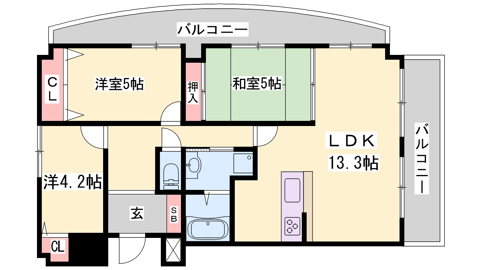 - DK13.3帖、洋室5帖、洋室4.3帖、和室5帖