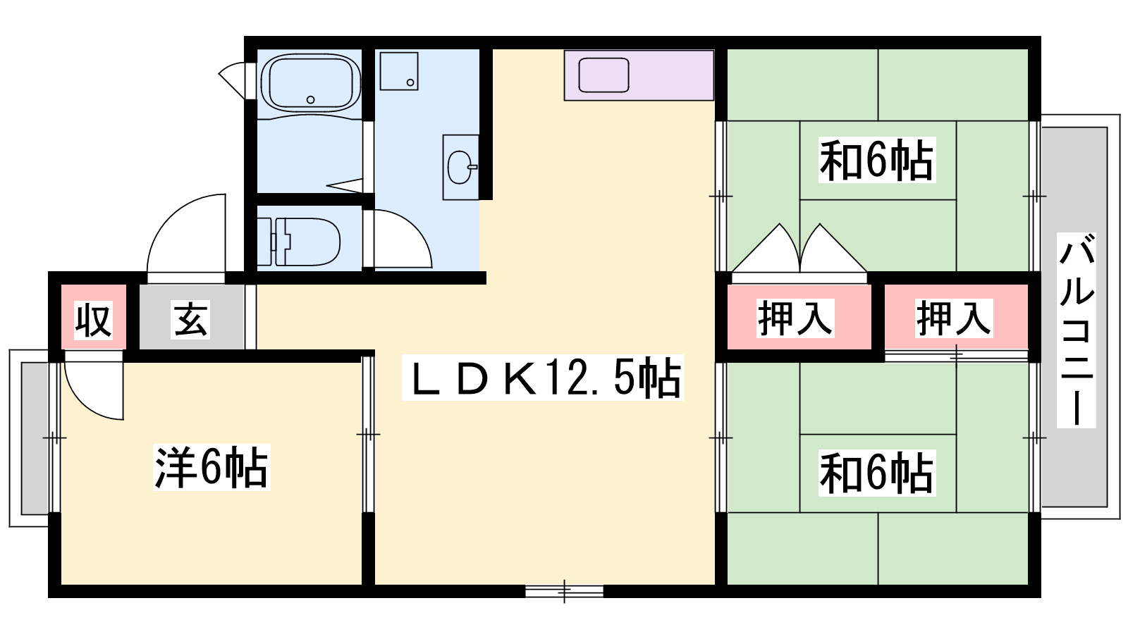 - LDK10帖、洋室6帖、和室6帖、和室6帖