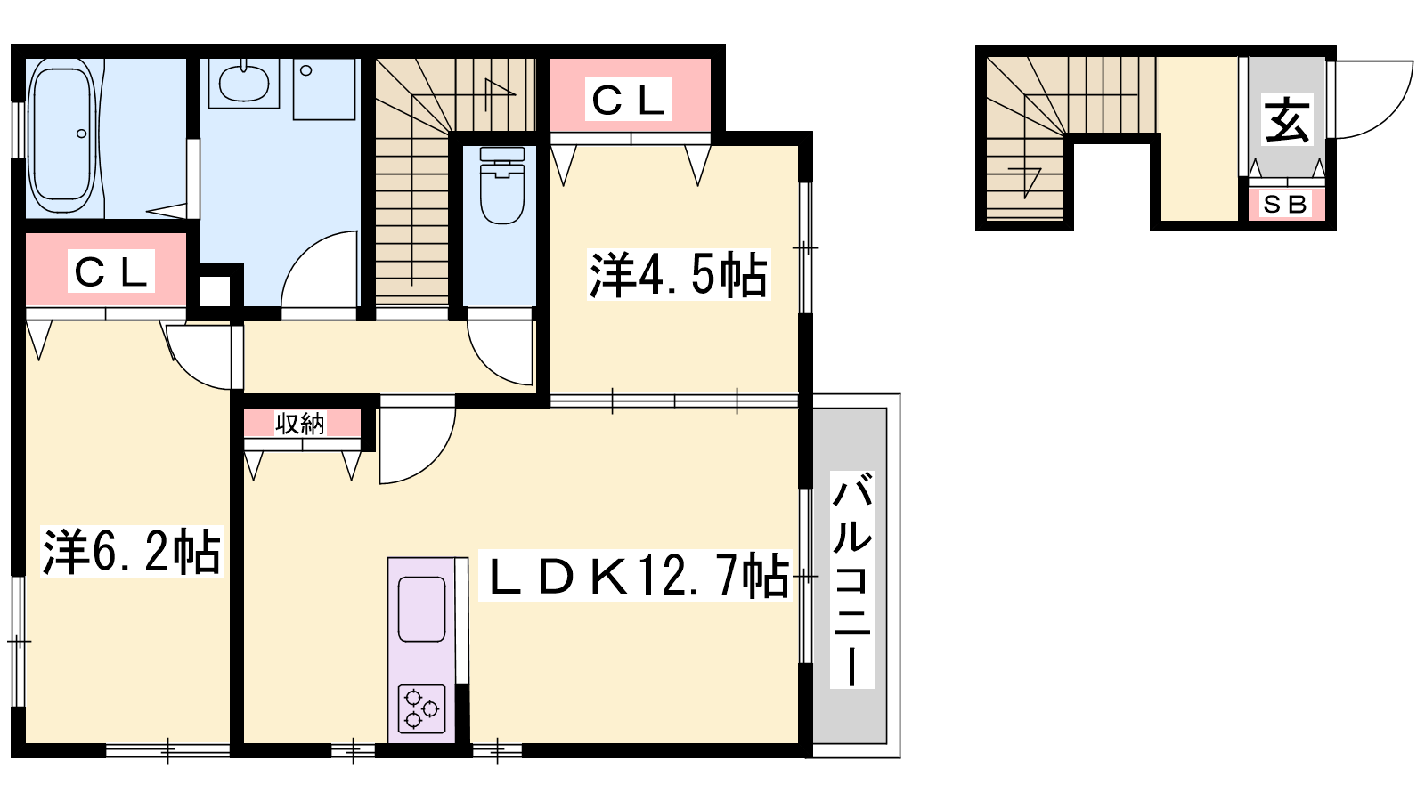 - LDK12.7帖、洋室6.2帖、洋室4.5帖