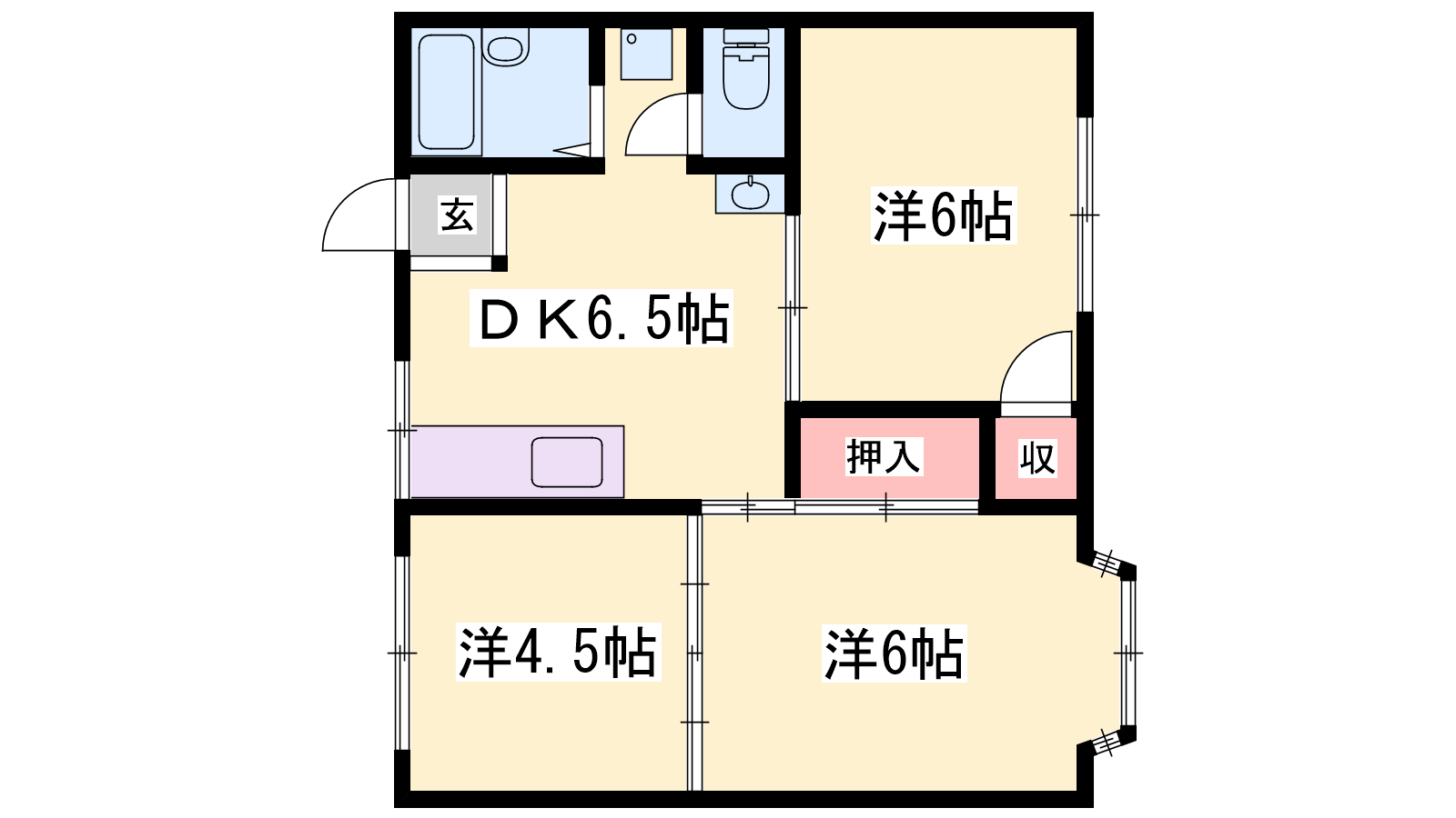 - DK6.5帖、洋室6帖、洋室6帖、洋室4.5帖