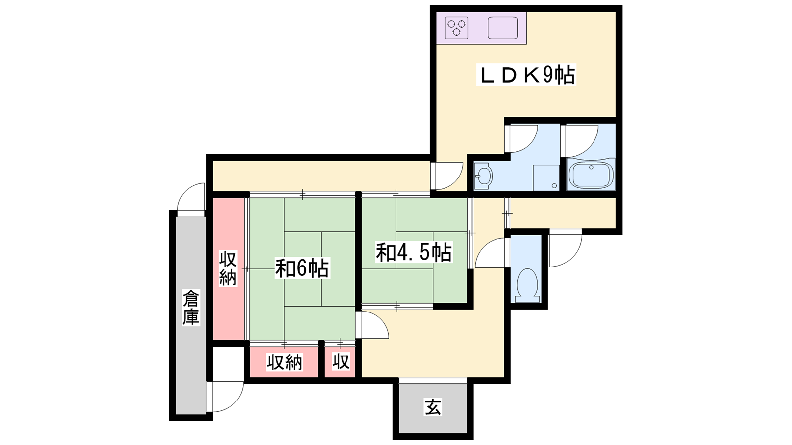 - LDK9帖、和室6帖、和室4.5帖
