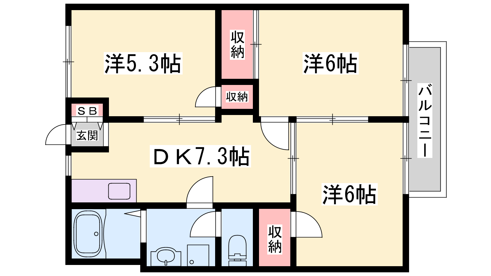 - DK7.3帖、洋室6帖、洋室6帖、洋室5.3帖