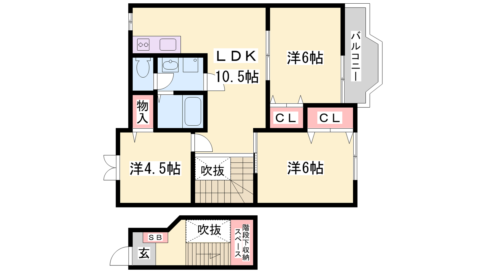 - LDK10.5帖、洋室6帖、洋室6帖、洋室4.5帖