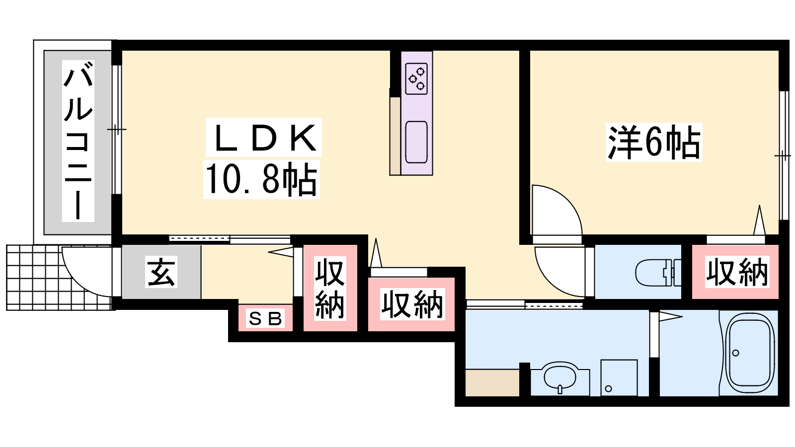 - LDK10.8帖、洋室6帖
