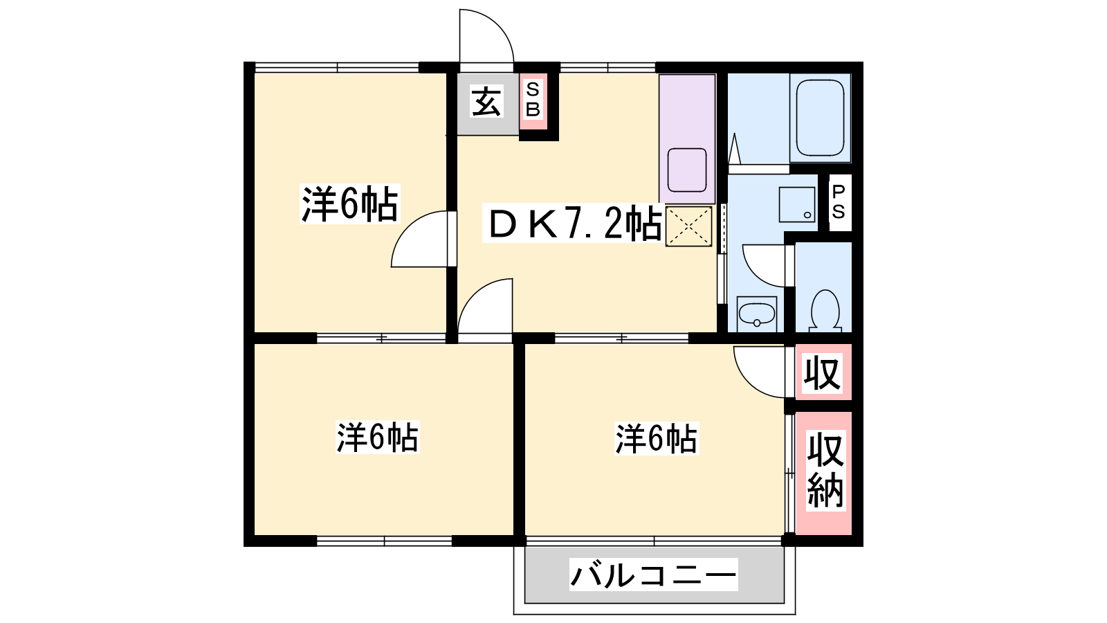 - DK7.2帖、洋室6帖、洋室6帖、洋室6帖