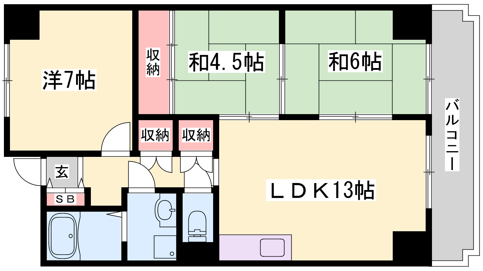 - LDK13帖、洋室7帖、和室6帖、和室4.5帖
