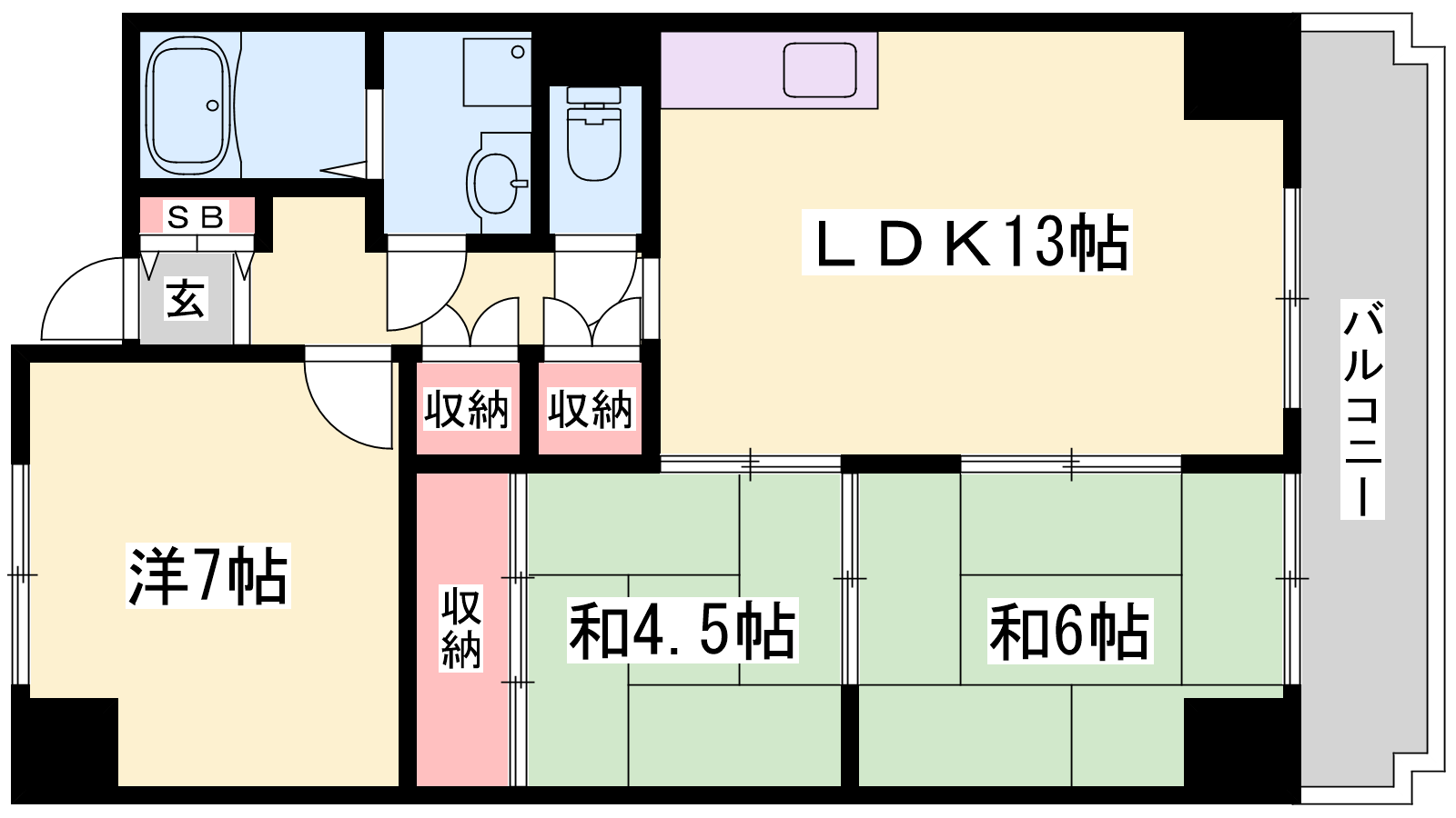 - LDK13帖、洋室7帖、和室6帖、和室4.5帖
