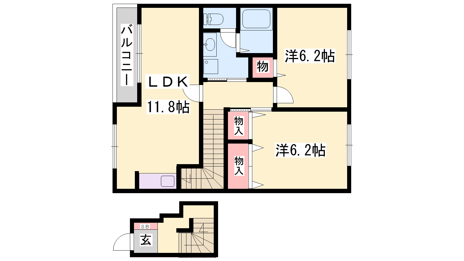 - LDK12帖、洋室6.2帖、洋室6.4帖