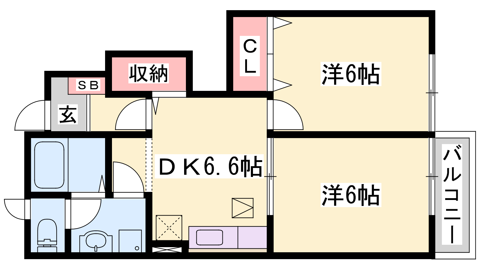 - DK6.6帖、洋室6帖、洋室6帖