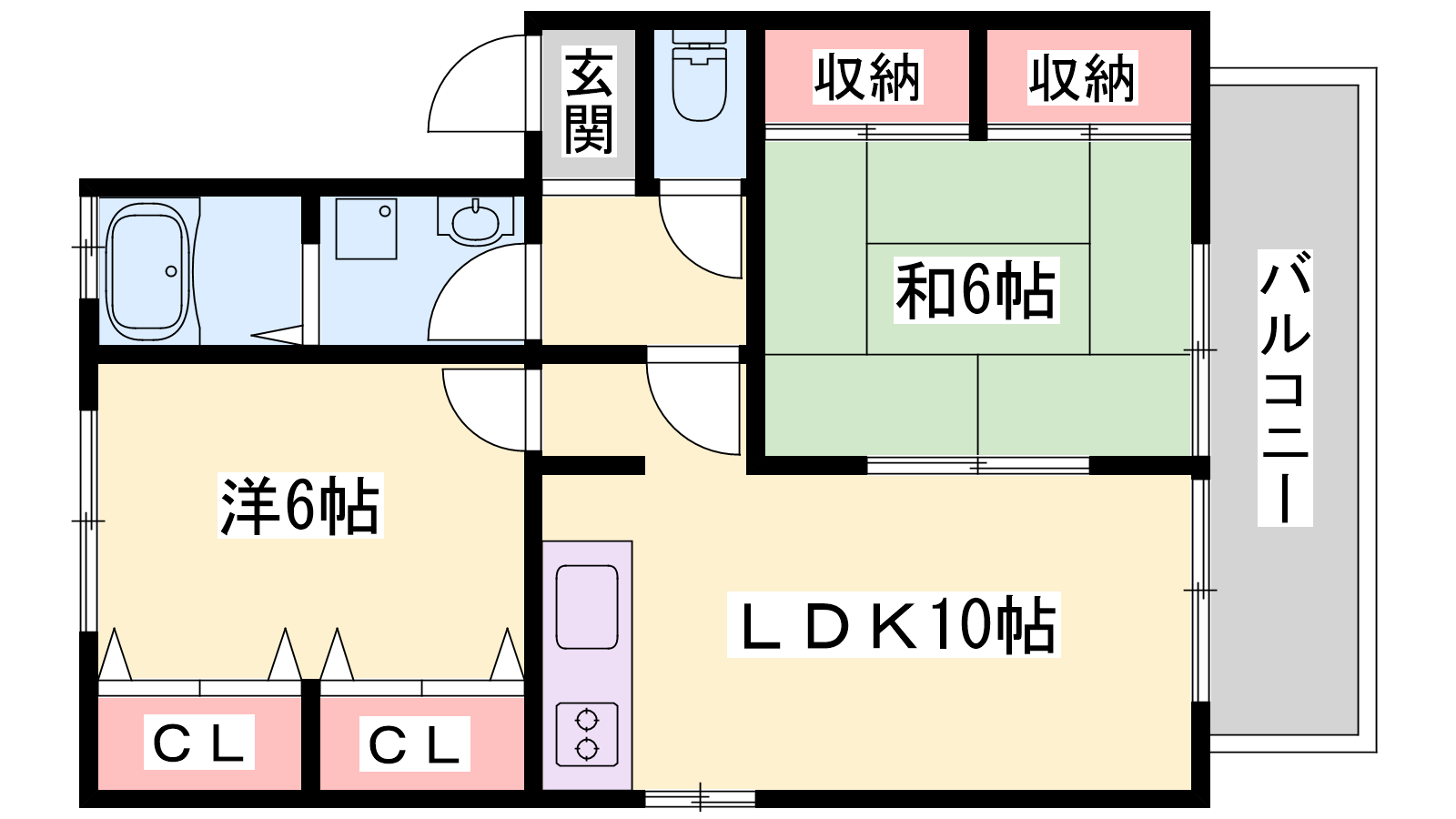- LDK10帖、洋室6帖、和室6帖