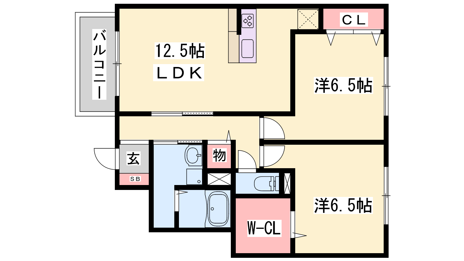 - LDK12.5帖、洋室6.5帖、洋室6.5帖