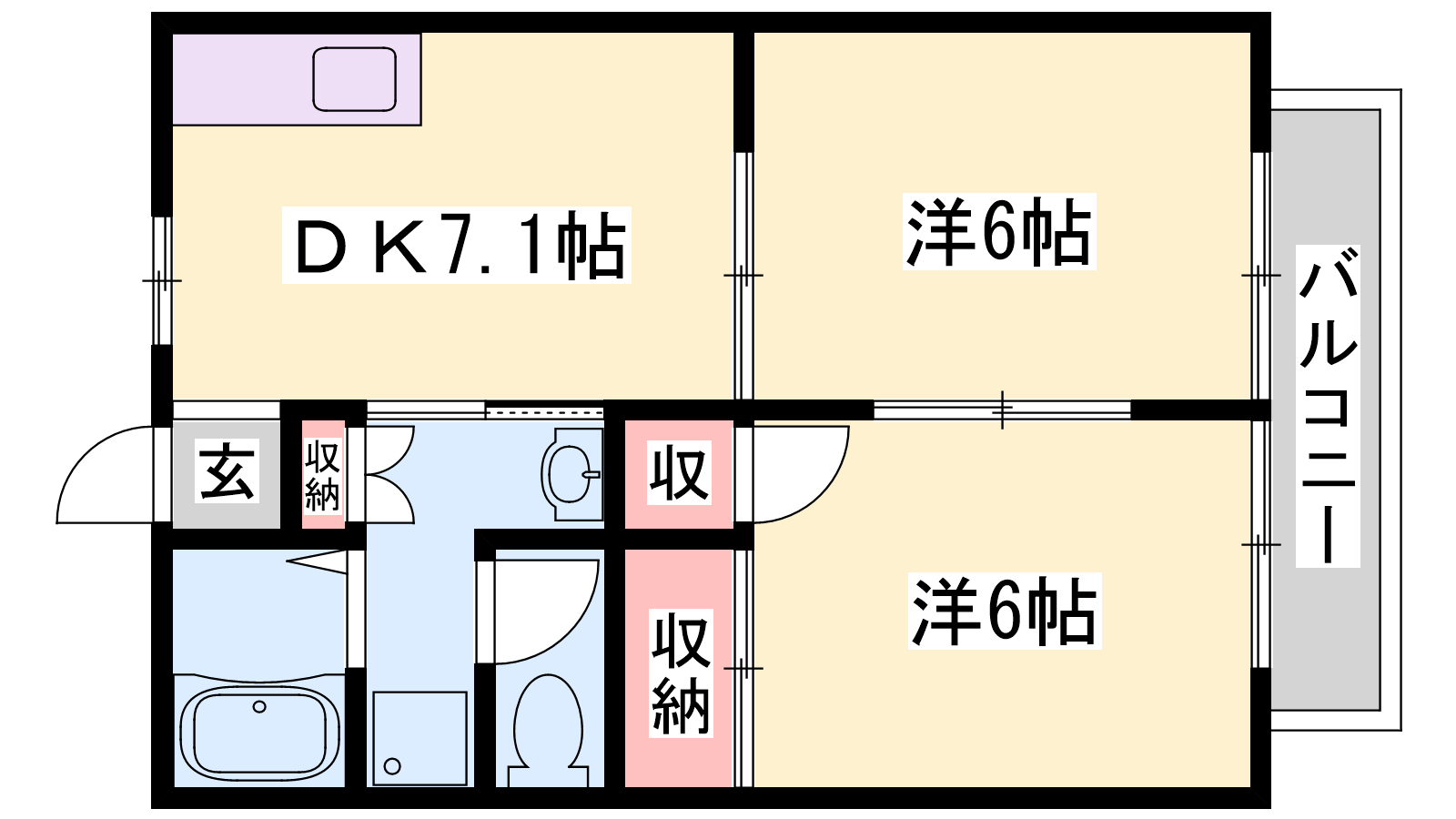- DK7.1帖、洋室6帖、洋室6帖