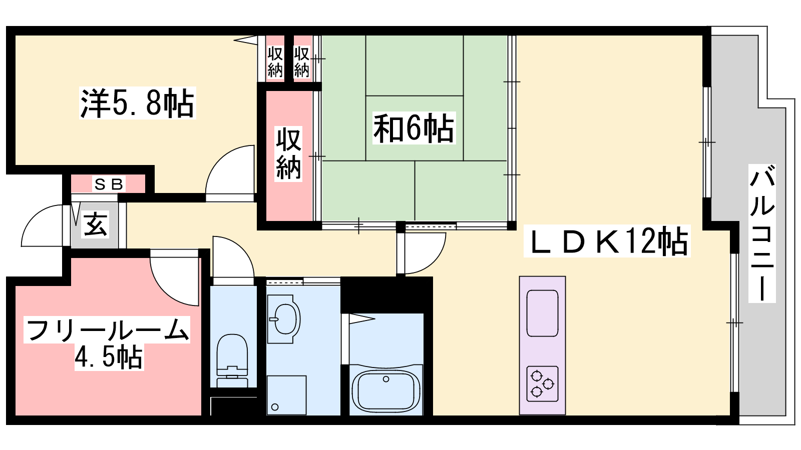 - LDK12帖、洋室6帖、洋室5.8帖、和室4.5帖