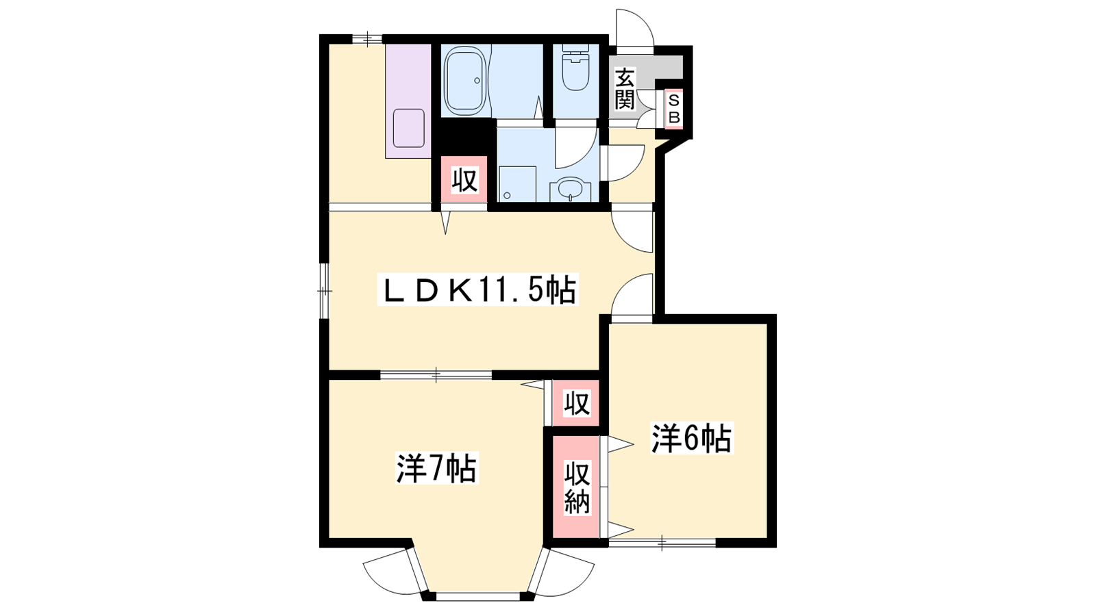 - LDK11.5帖、洋室7帖、洋室6帖