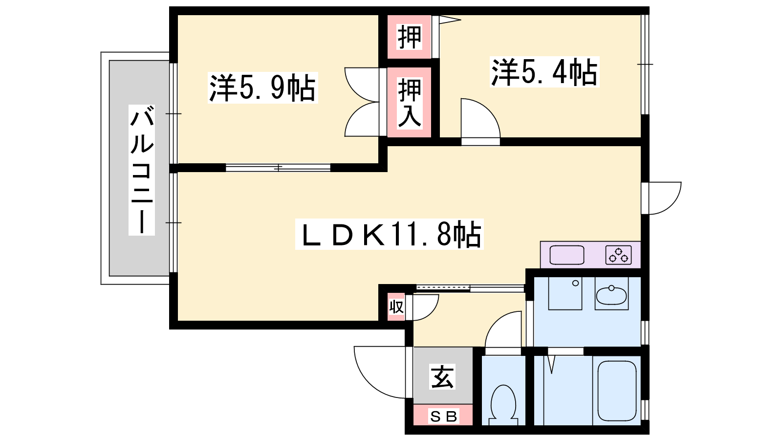 - LDK11.8帖、洋室5.9帖、洋室5.4帖