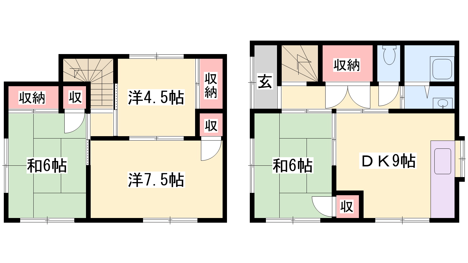 - DK9帖、洋室7.5帖、洋室4.5帖、和室6帖、和室6帖