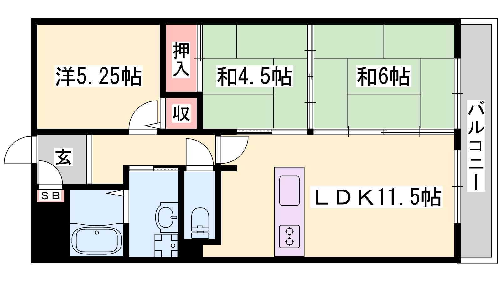 - LDK11.5帖、洋室5.25帖、和室6帖、和室4.5帖