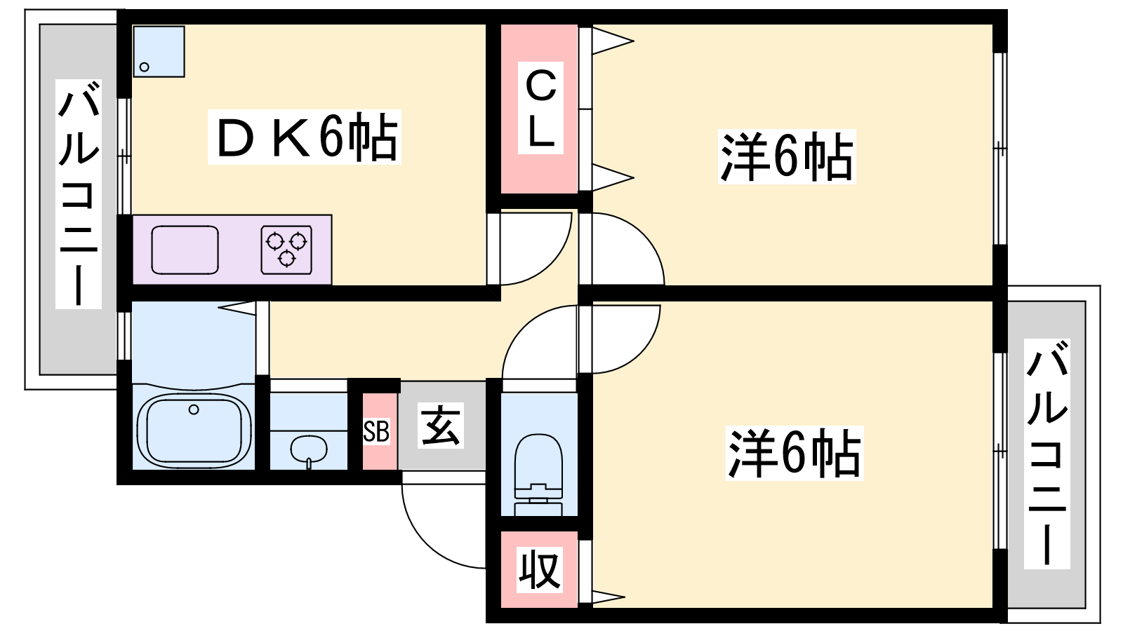 - DK6帖、洋室6帖、洋室6帖