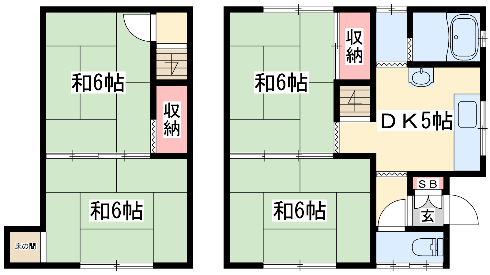 - DK5帖、和室6帖、和室6帖、和室6帖、和室6帖