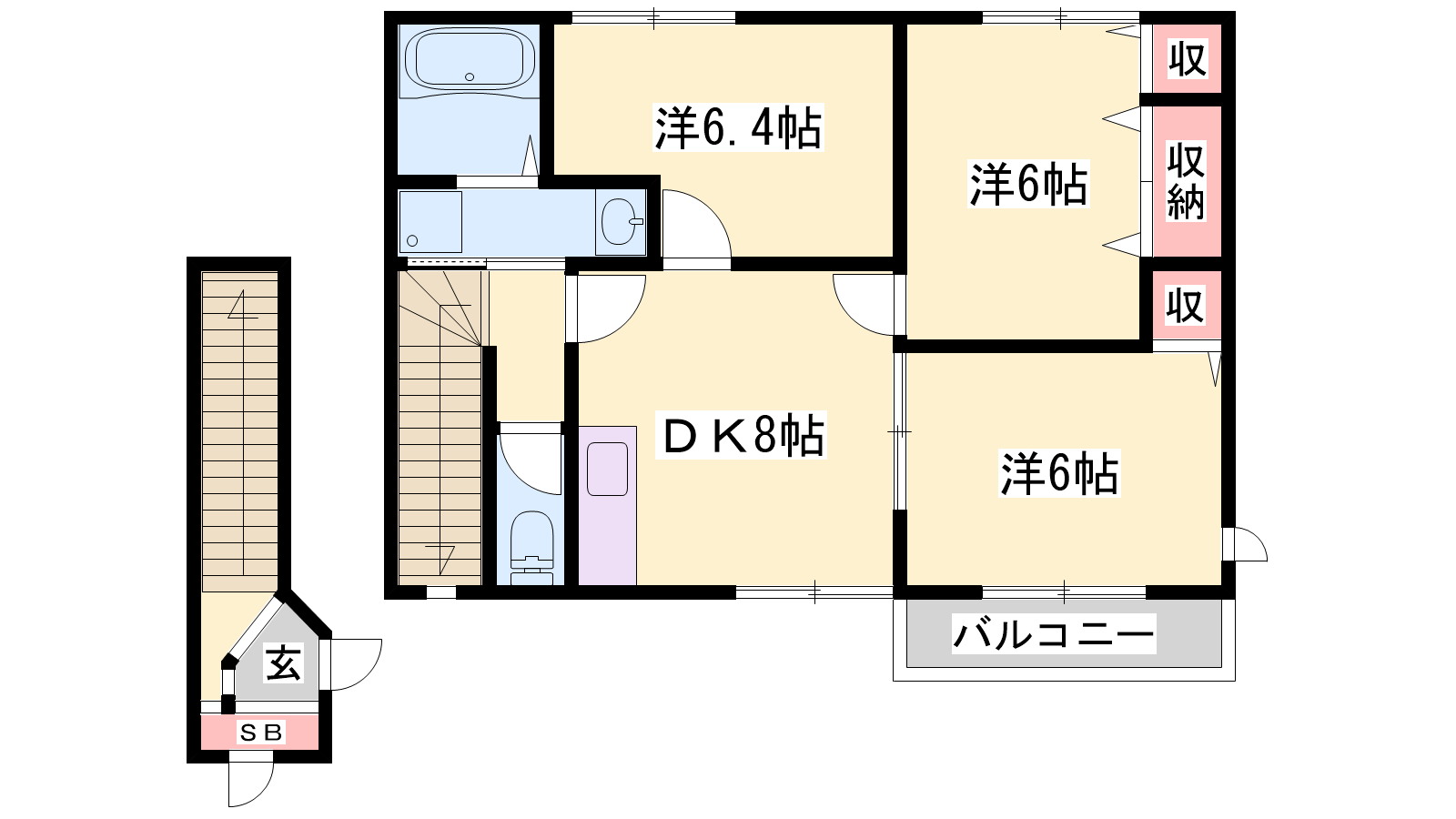 - DK8帖、洋室6帖、洋室6帖、洋室6帖