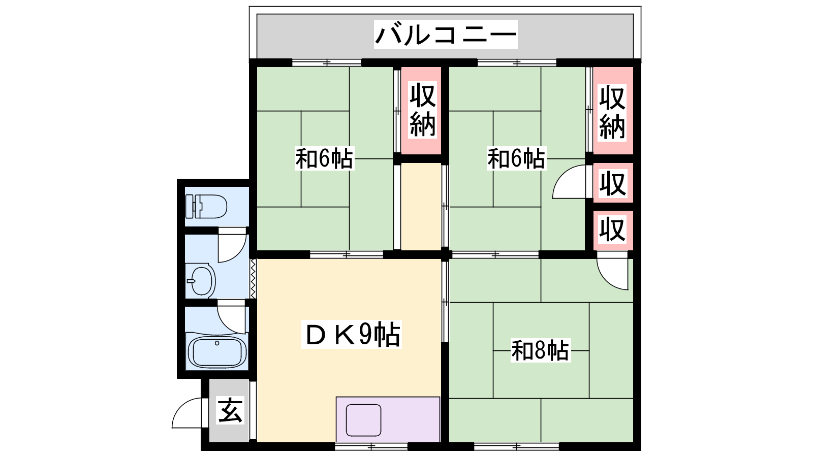 - DK9帖、洋室3帖、和室6帖、和室6帖