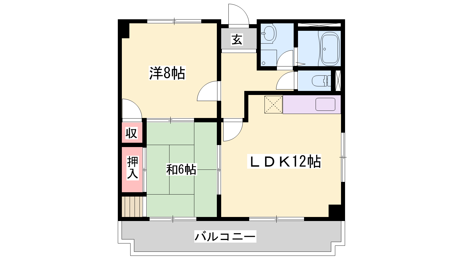 - LDK12帖、洋室8帖、和室6帖