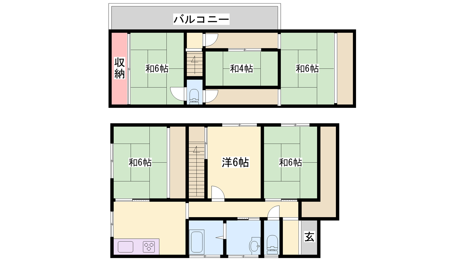 - DK6帖、洋室6帖、和室6帖、和室6帖、和室6帖、和室6帖、和室4帖
