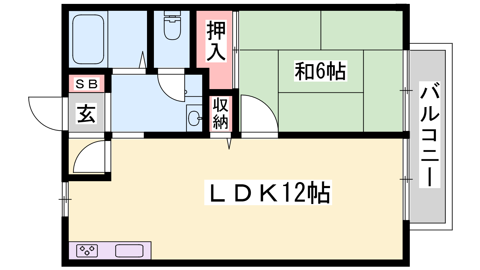 - LDK12帖、和室6帖