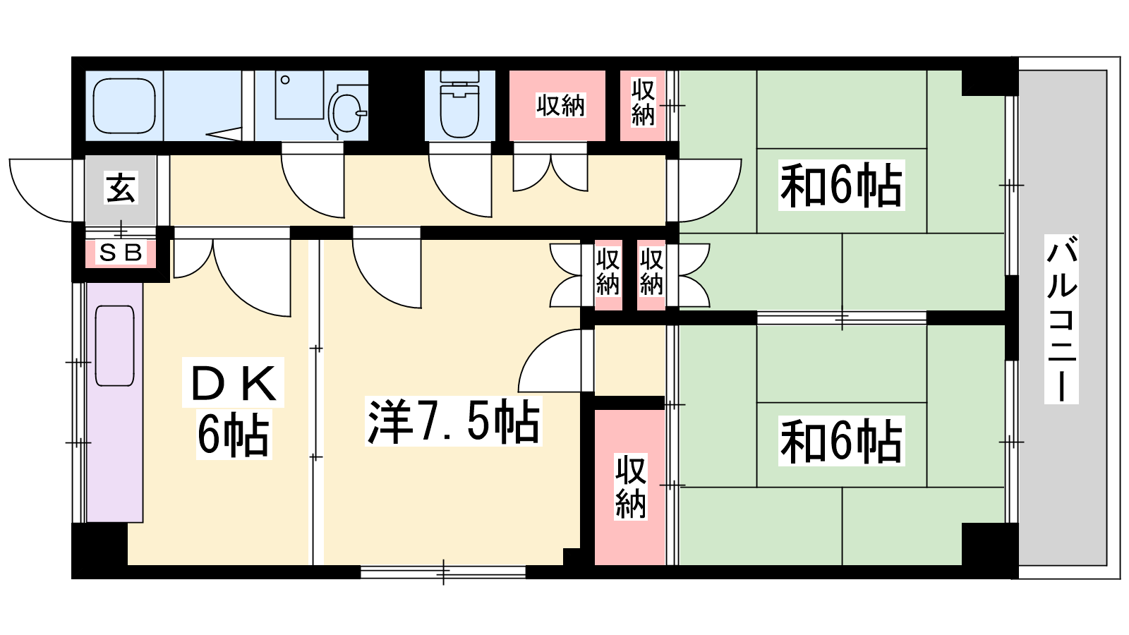- DK6帖、洋室7.5帖、和室6帖、和室6帖