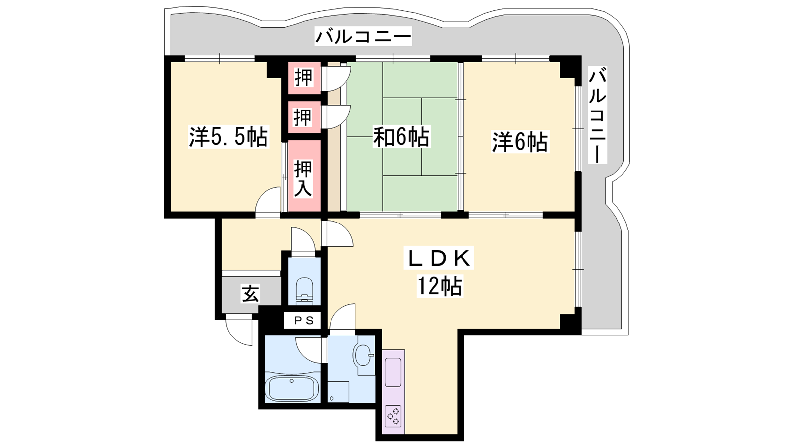 - LDK13帖、洋室6帖、洋室5.5帖、和室6帖