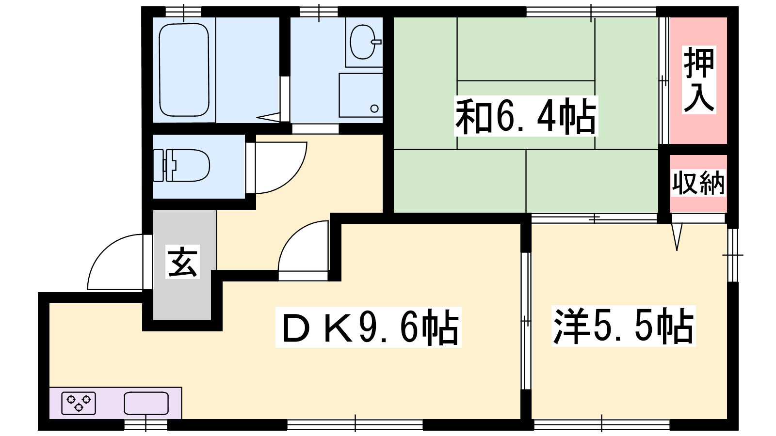 - DK9.6帖、洋室5.5帖、和室6.4帖