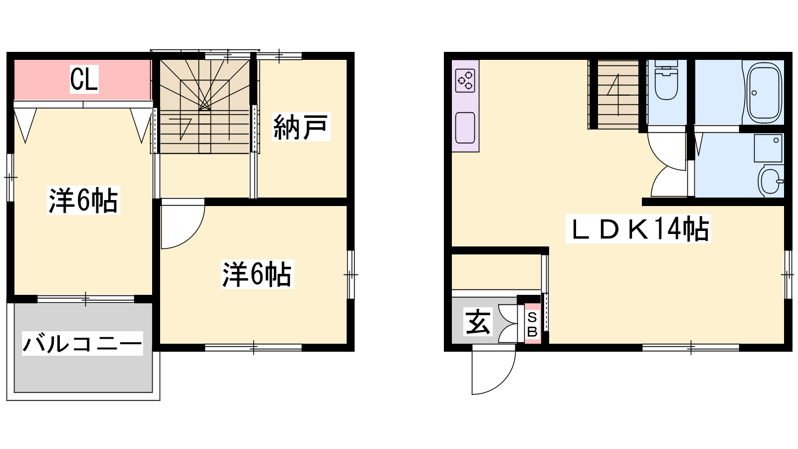 - LDK14帖、洋室6帖、洋室6帖