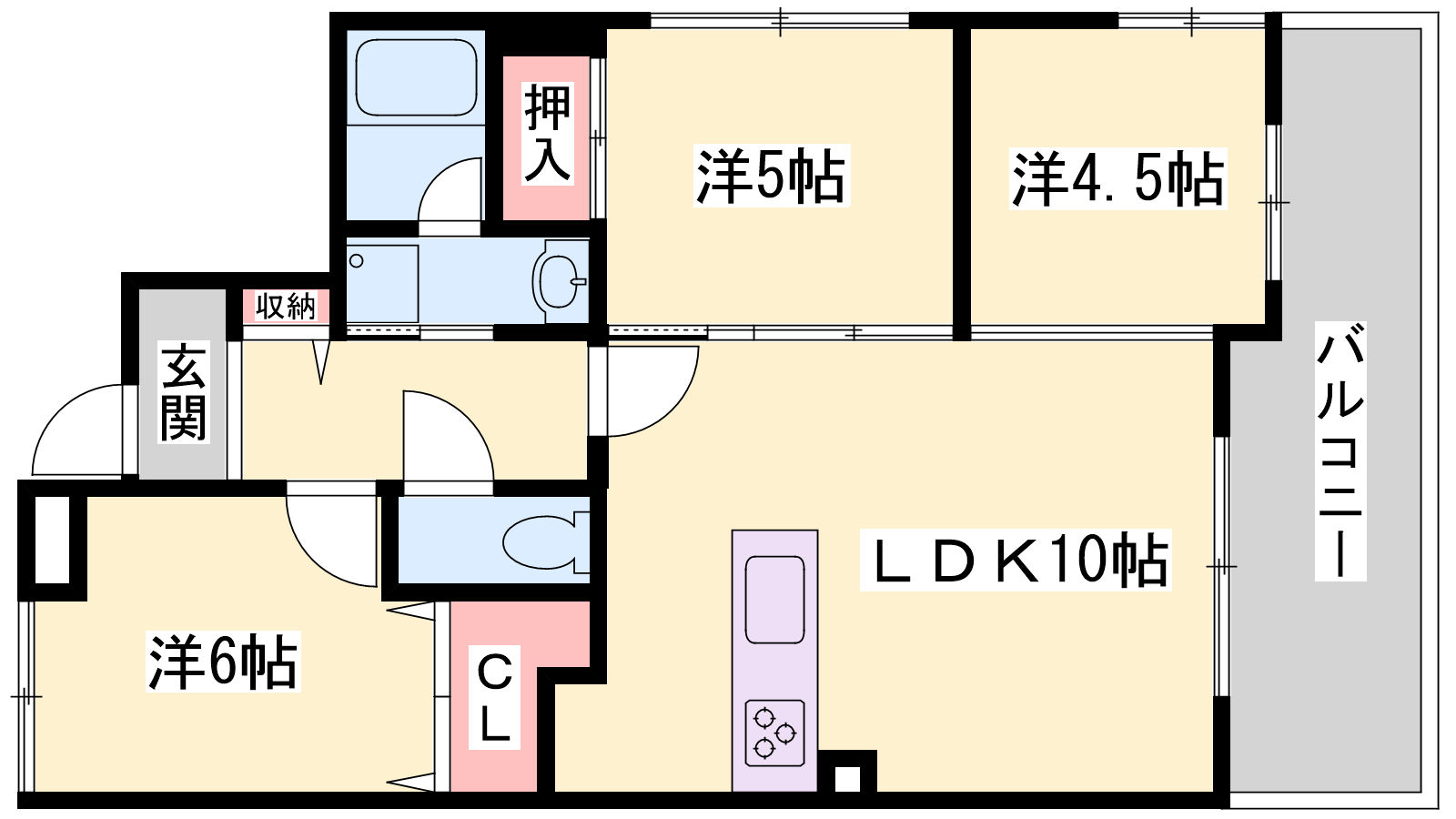 - LDK10帖、洋室6帖、洋室4.5帖、洋室5帖