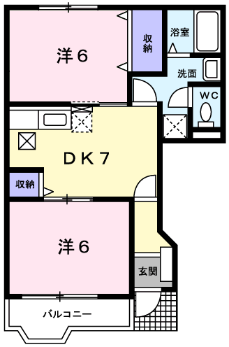 - DK7帖、洋室6帖、洋室6帖